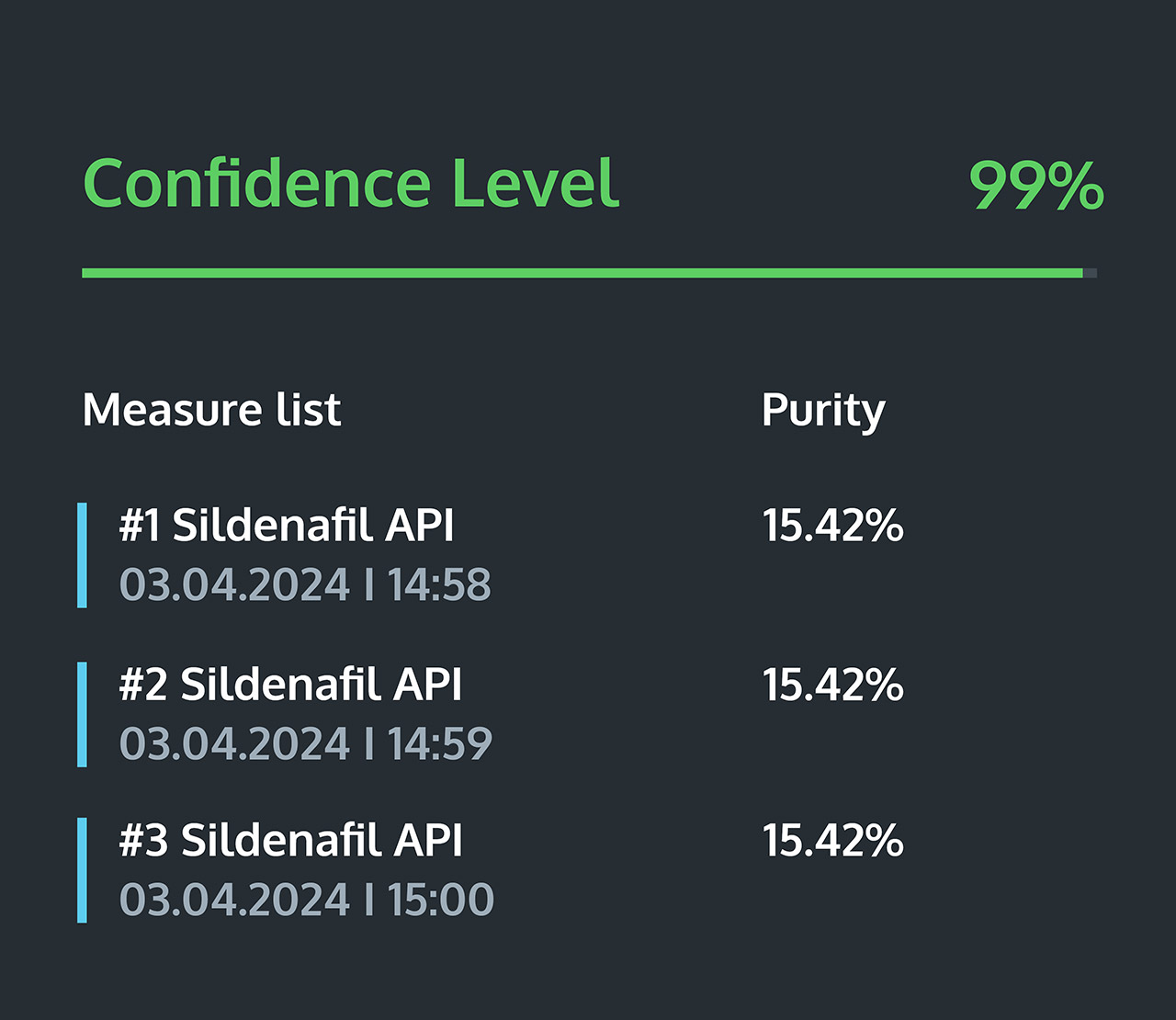 Unlock the power of our cloud-based platform for exact substance identification and accurate purity analysis in mixtures. Our near-infrared (NIR) technology specializes in precise pharmaceutical mixture quantification and guarantees the accurate purity evaluation of Active Pharmaceutical Ingredients (APIs) in medications.