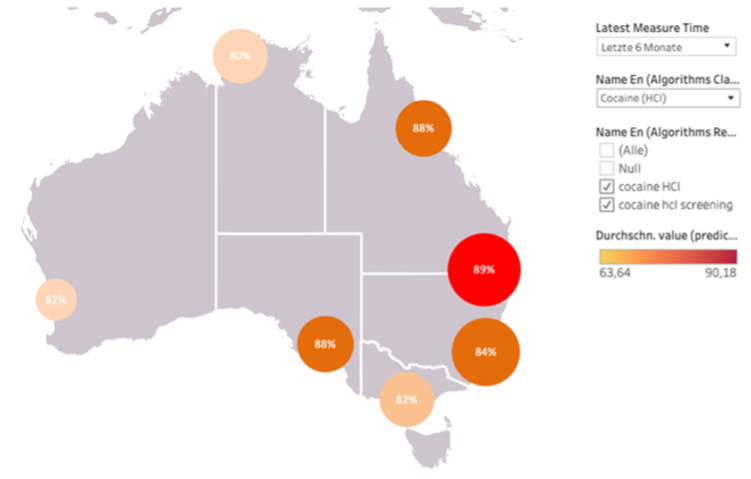 This map allows users to visualize the distribution of drugs across different cities. Hence, it offers a better understanding of factors such as the percentage of drugs in circulation and their purity levels. This, in turn, assists law enforcement in making informed decisions about where to focus their efforts in combatting drug trafficking, identifying key distributors, and optimizing their anti-drug strategies within the country.
