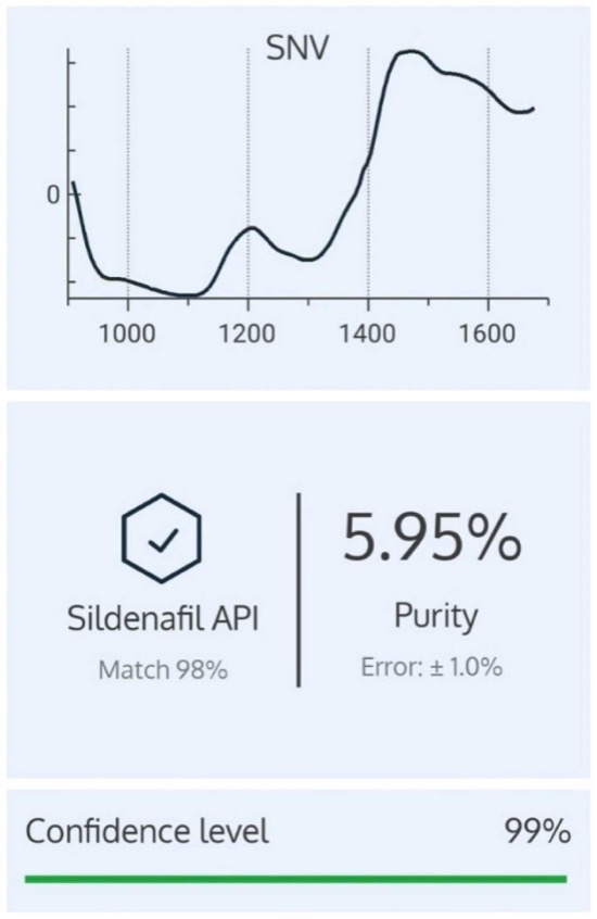 Beyond detection, the models accurately quantified sildenafil citrate levels in all samples, including falsified ones. For authentic Viagra, predicted concentrations aligned closely with the declared values. For falsified samples, the models correctly identified low API levels, which naturally deviated from the expected authentic concentrations due to their counterfeit nature—often lacking the active ingredient entirely or containing substitutes. The quantification results were within acceptable uncertainty margins and demonstrated excellent accuracy when validated against reference methods like HPLC.