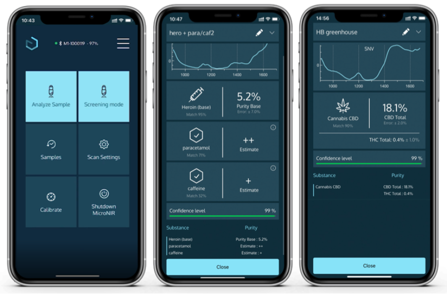 The mobile app has a simple, intuitive interface that provides real-time identification and quantification of illicit drugs, cutting agents and precursors.
